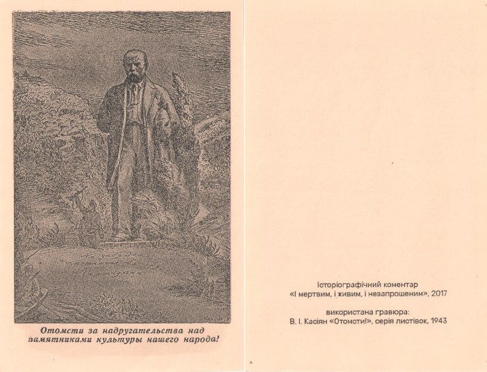 18 грудня 2017 р. у холі національної академії образотворчого мистецтва та архітектури (НАОМА), в день святкування 100-річчя від заснування, була проведена акція «і мертвим, і живим, і незапрошеним». історіографічний коментар.